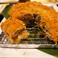 돈까스 위에 치즈가 듬뿍 올라가 있어요.