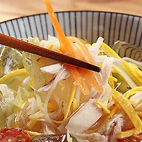 삶아 놓은 소면을 그릇에 담고