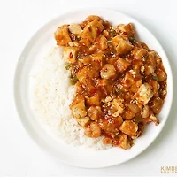 두반장으로 맵게 맛을 낸요리, 치즈떡볶음 ? 오징어볶음?