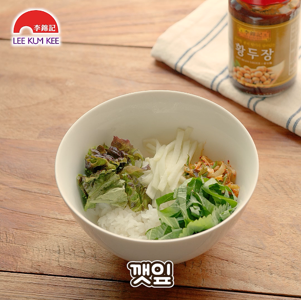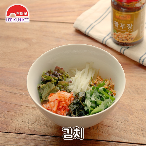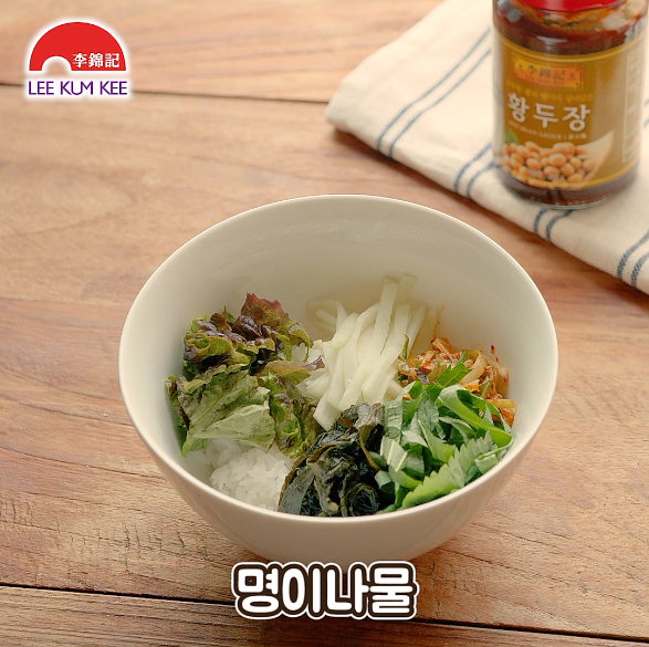 명이나물, 김치를 올려주세요.