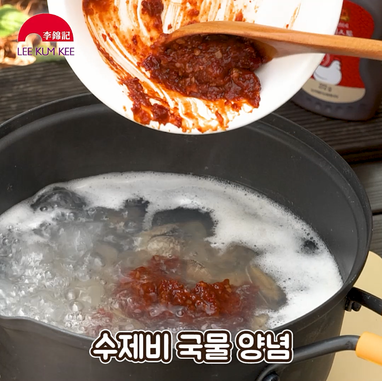수제비 국물 양념을 넣어