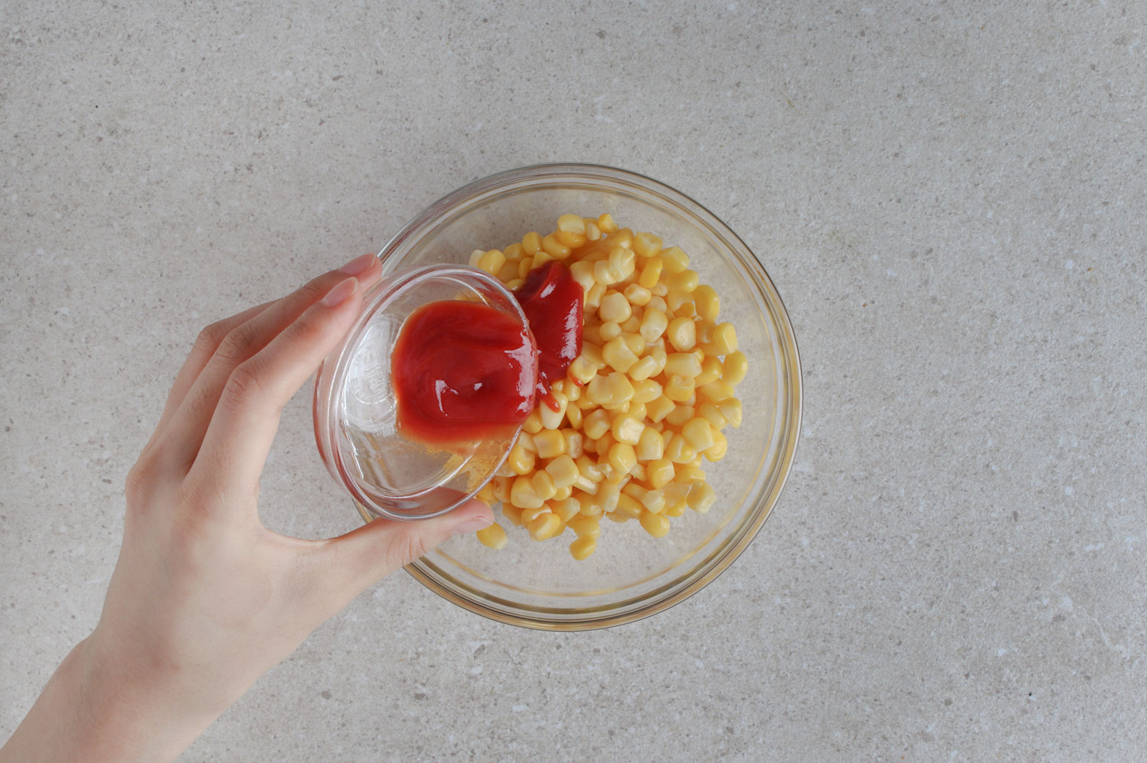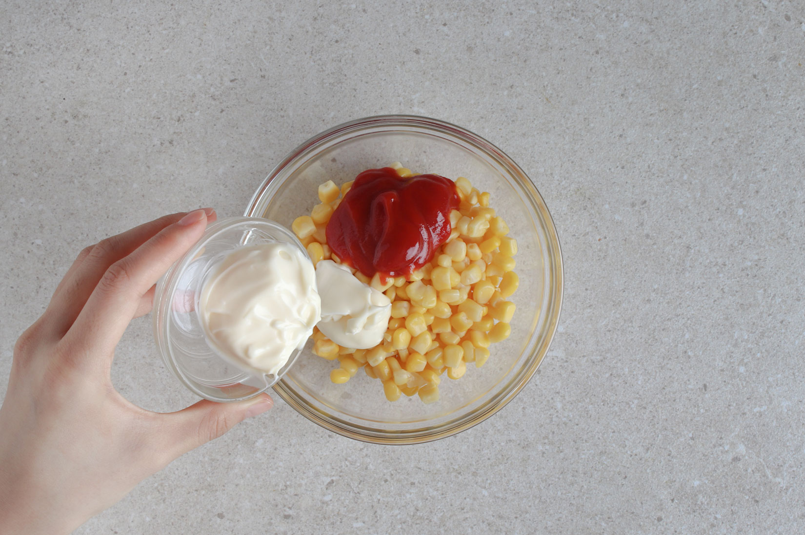 볼에 스위트콘, 케챂, 마요네스,