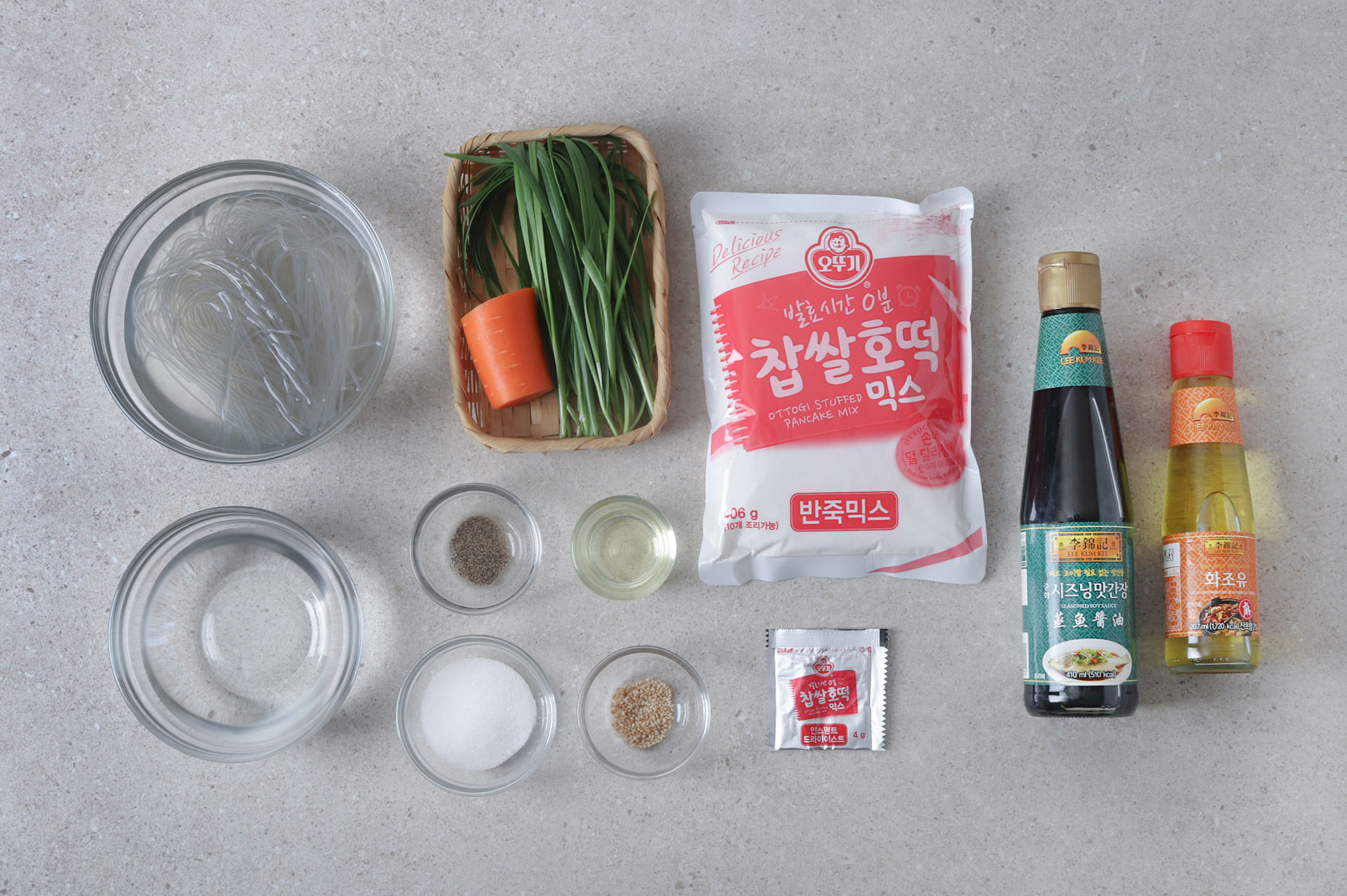 불린 당면 80g, 부추 15g, 당근 20g,