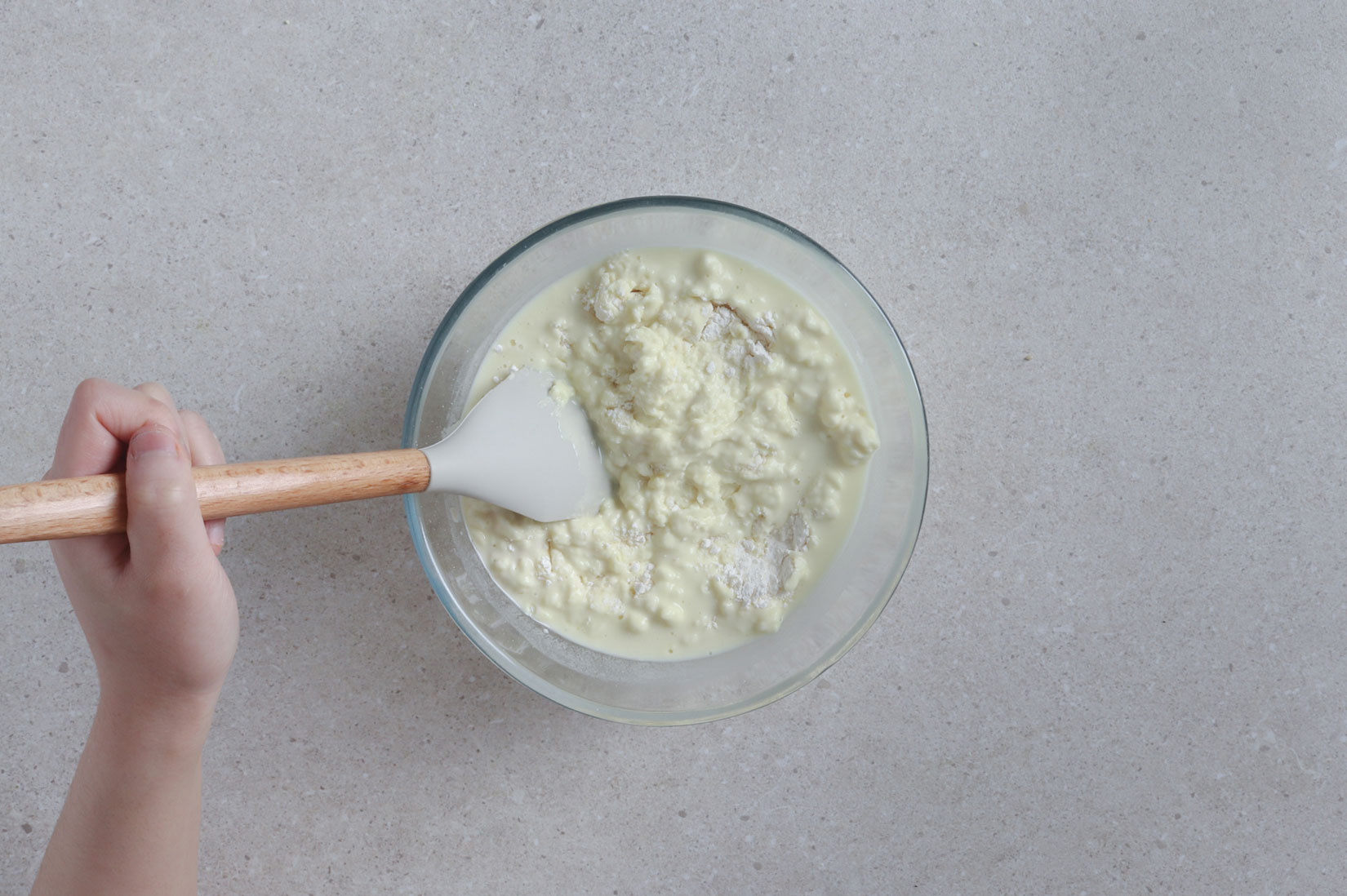 물을 넣고 반죽해 주세요.