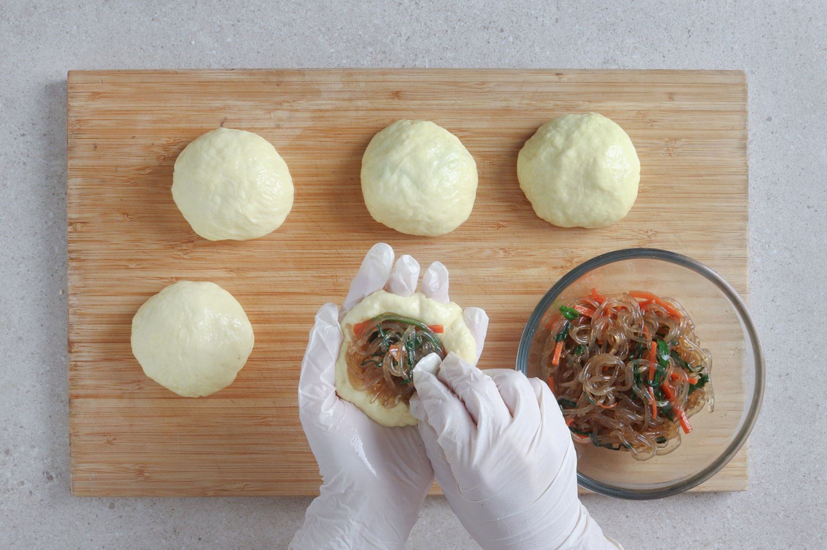 호떡 반죽에 4의 매콤 잡채를 넣고