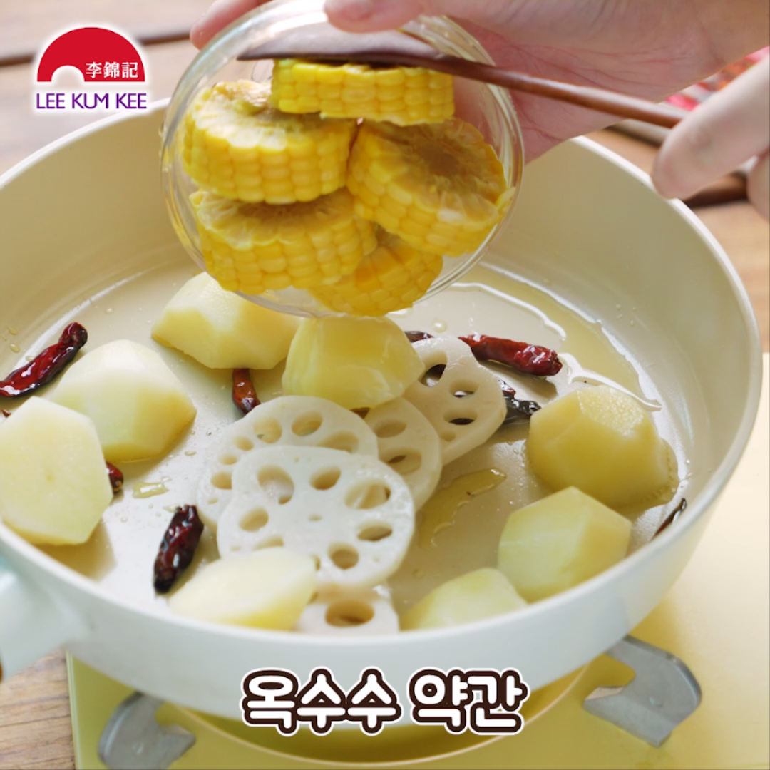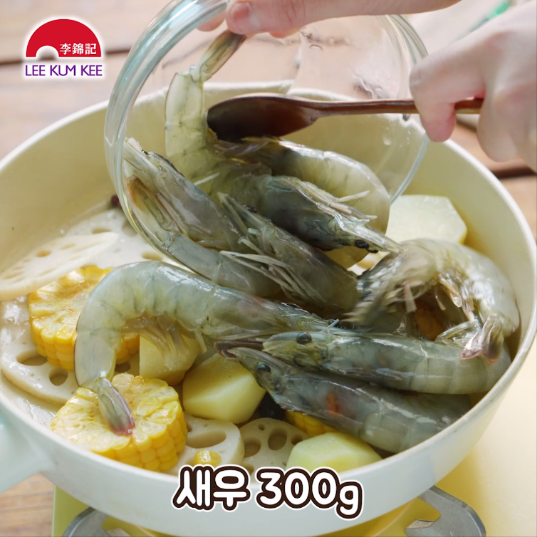 옥수수, 새우를 넣어