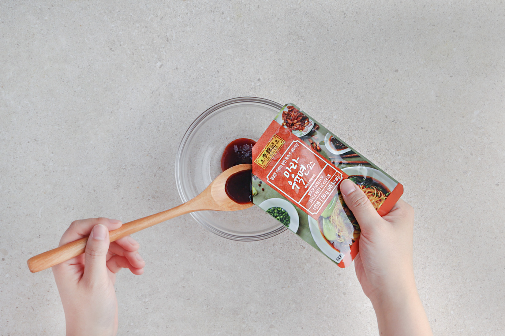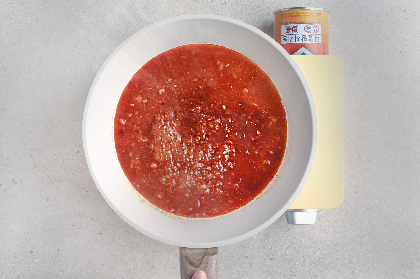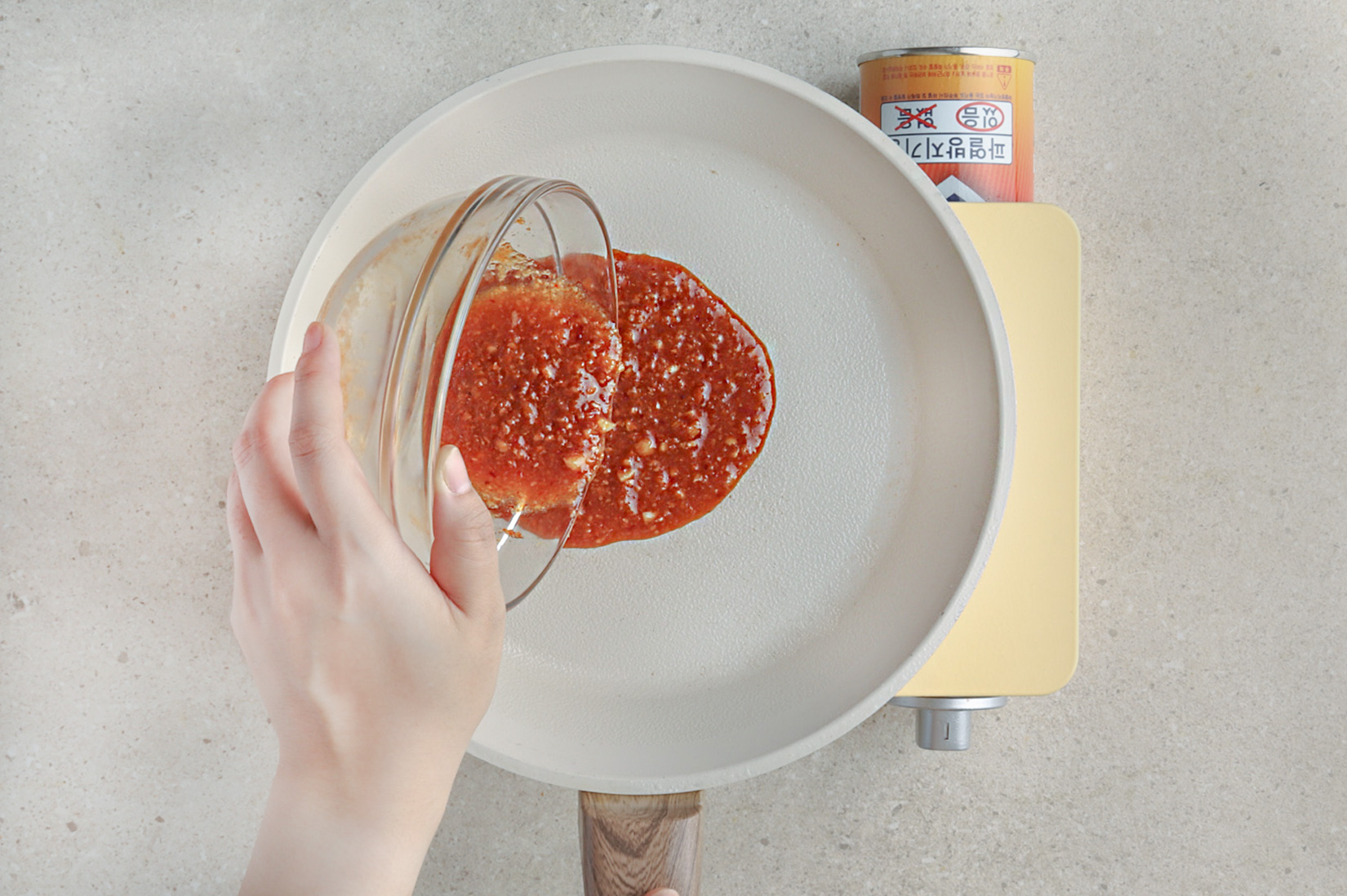 팬에 섞어놓은 양념 재료를 넣고 끓여주세요.