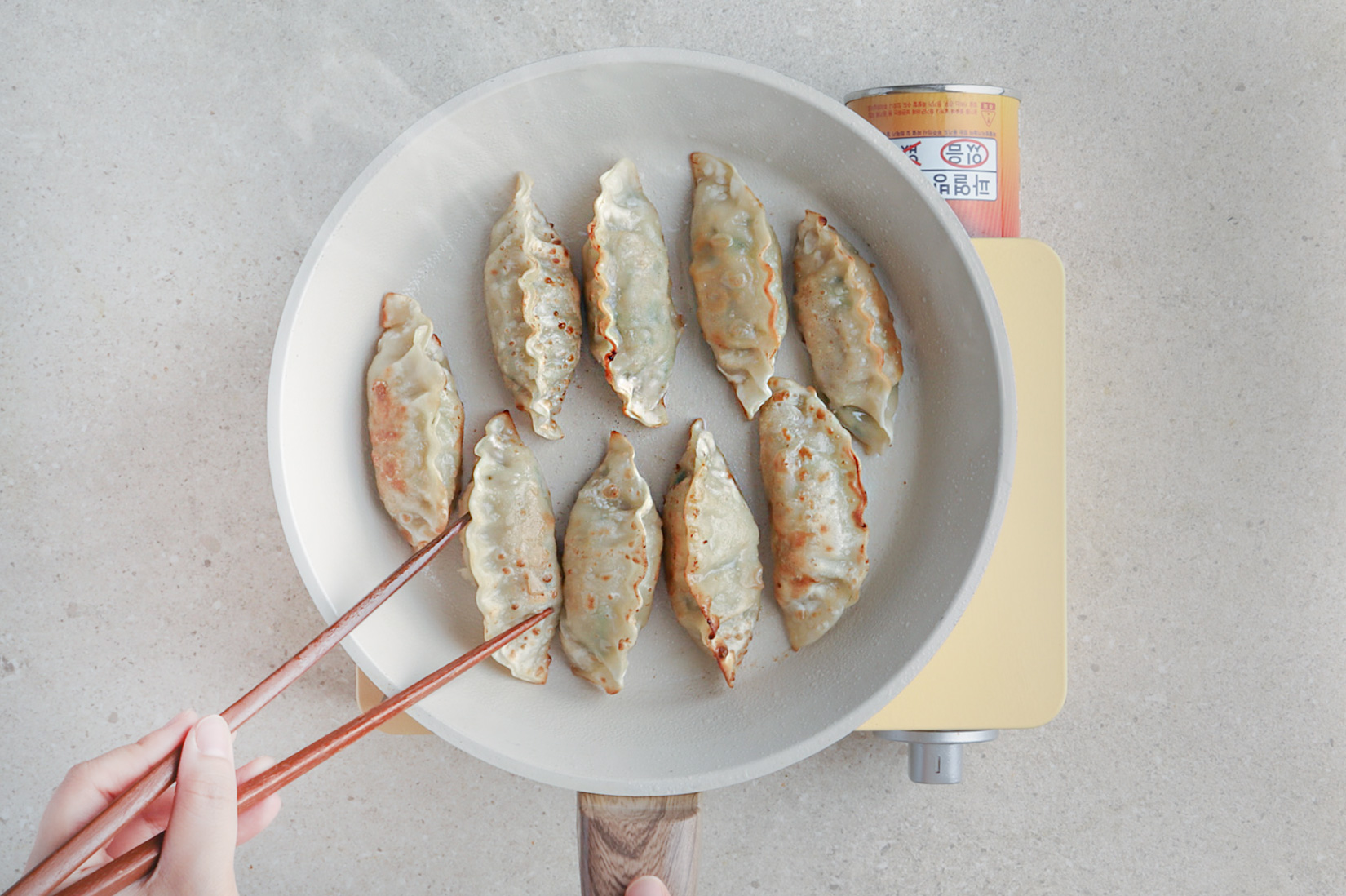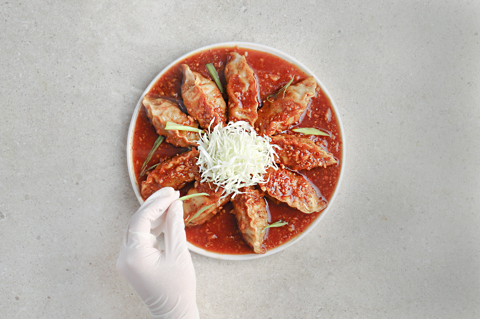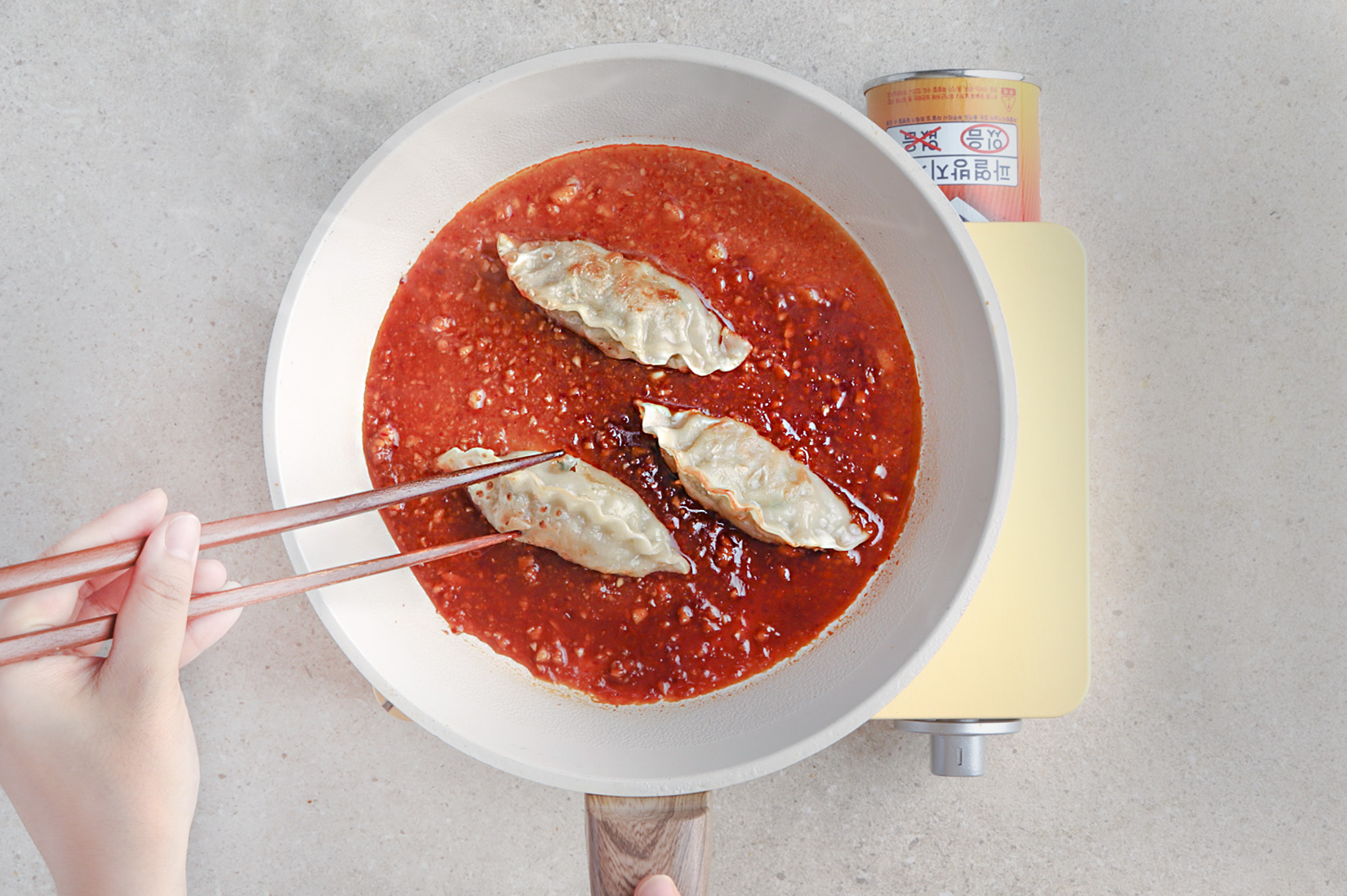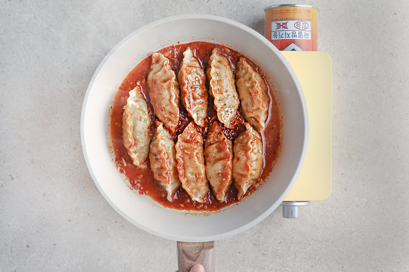 끓여진 양념장에 만두를 넣고 졸여주세요.