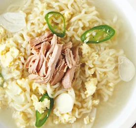 비 오는 날 한 번쯤 생각나는 닭곰탕 만드는 법! * 안녕하세요. 소스킹입니다. 오늘은 아침부터 비가 오더라고요! 오늘 같이 비 오는 날 추천드리고 싶은 메뉴가 있죠~ 바로 닭곰탕인데요 :) 특별히 오늘은 닭곰탕에 면을 추가해보겠습니다ㅎㅎ 시원한 국물요리 닭곰탕의 비밀은 치킨파우더예요! 프리미엄 닭고기를 사용해 만든 치킨파우더는 다양한 요리의 육수 베이스로 사용됩니다. 그럼 지금 바로 시작해볼까요? * 재료(1~2인분) 이금기 치킨파우더 1작은술, 통조림 닭가슴살 1/2캔, 오뚜기 라면사리 1개, 오뚜기 순후추 약간, 달걀 1개, 마늘 3쪽, 대파 10cm 1대, 청양고추 1개, 물 3컵(600ml) 1 물(3컵)을 먼저 끓이고, 청양고추, 대파는 어슷 썰고, 마늘은 편 썰어주세요. 닭가슴살은 체에 밭쳐..