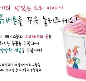 베스킨 아이스크림 썸네일형 리스트형 이금기 소스 찍고 베스킨라빈스31 파인트 받아가세요! ~1/24 찾았다! 이금기 소스! 이금기하면 굴소스~ 굴소스하면 이금기~ 그런데 다른 소스도 킹왕짱이라는거! 곳곳에 숨겨진 이금기 소스를 찰칵 찰칵 찍어주세요. 잡지, TV, 마트 코너, 우리집 부엌 등등등 숨어있는 이금기 로고를 찾아 인증샷 찰칵 해서 올려주세요. 참여방법 1. 네이버 소스앤쿡 카페 ( http://cafe.naver.com/leekumkee )에 가입, 찾아라!이금기소스 게시판에 일상에서 발견한 이금기로고를 찰칵! 말머리[찾았다!이금기]를 달고 새글로 작성해주세요! 단, 지난번에 참여한 사진은 제외됩니다! 2. 해당 이벤트 글을 네이버 블로그로 스크랩하고 URL을 댓글로 남겨주세요~ 이벤트가 마음에 들면 스크랩하기~! 이색적인 장소에서 발견할수록 당첨확률은 UP! 기간 1월 15일 ~ 1월 24.. 더보기 트윗 팔로우&RT 이벤트 ~9/23 여러분의 성원에 힘입어 한번 더 진행합니다! 이금기 트위터 이벤트 !! 많이많이 참여해주세요! :D http://twitter.com/lkkkorea ↑↑↑↑↑소스킹 트위터로 GOGO~↑↑↑↑↑ 더보기 트윗 팔로우&RT 이벤트 ~9/9 돌아온 이금기 이벤트 ~ 많이 많이 참여해주세요 :) 많이많이 참여해주세요! :D http://twitter.com/lkkkorea ↑↑↑↑↑소스킹 트위터로 GOGO~↑↑↑↑↑ 더보기 퀴즈 풀고 베스킨라빈스 아이스크림 받으세요! ~7/28 굴반장의 퀴즈타임 "나와 통하였느냐!" Q. 너무 더운 오늘! hot hot!!!!!!! 더위를 이기기 위해 굴반장은 오늘 아이스크림을 먹었답니다~~ 여기서 퀴즈~!! 굴반장이 먹은 아이스크림은 무슨맛일까요? + 간단한 보기 + 1. 바닐라맛 아이스크림(음~ 달콤해) 2. 두반장맛 아이스크림 (???) 3. 굴소스맛 아이스크림(??!!!!) ㅡㅡㅡㅡㅡㅡㅡㅡㅡㅡㅡㅡㅡㅡㅡㅡㅡㅡㅡㅡㅡㅡㅡㅡㅡ 참여방법 1. 본 이벤트페이지를 자신의 네이버 블로그로 스크랩 2. 스크랩한 URL과 함께 덧글로 정답과 이유!를 적어주세요~ 기간 ~7월28일 발표 7월29일 정답을 맞추시는 분들 중 추첨을 통해 2분께 베스킨라빈스 싱글킹을 선물로 드립니다 * 상기이미지는 실제와 다소 차이가 있습니다 * 더보기 이금기 페이스북 레시피글 공유하고 아이스크림, 문화상품권 받자 ~ 7/26 맛있는 이야기, 여기저기 퍼뜨려라! 이금기 페이스북http://www.facebook.com/korea.lkk좋아요 꾸욱~ 눌러주세요 ^-^ 더보기 (종료) 베스킨라빈스 싱글킹 쏜다! 성년의날기념으로 받고 싶은 선물은? ~5/20 베스킨라빈스 싱글킹 아이스크림 쏜다! 성년의날기념으로 받고 싶은 선물은? 곧 다가오는 성년의날 , 5월 20일 성년의 날의 주인공이신 분! 이미 벌써 몇십년전에 성년이 되신 분! 성년이 되고 싶어하시는 분! 성년의 날에 어떤 선물을 받고 싶으신가요? or 혹은 받고 싶었던 선물..? 참여방법 1. 이벤트 페이지에서 성년의날 받고 싶은 선물을 투표해주세요. 2. 덧글로 선물을 선택한 이유 작성합니다. 기간 5월16일 ~ 5월20일 발표 5월 21일 성년의 날 특별하게 ~ 이금기 소스 셋트는 어떠신가요?? 절대 잊지 못할 선물이 될 것 같지 않나요ㅎㅎㅎ 투표에 참여해수지는 분들 중 추첨을 통해 3분께 베스킨라빈스 싱글킹 아이스크림을 선물로 드립니다! 베스킨라빈스 싱글킹 (3명) *상기 이미지는 실제와 다소 .. 더보기 이전 1 다음