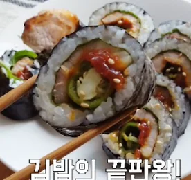 고기 덕후를 위한 이색 김밥!삼겹살 김밥 만들기 *안녕하세요, 소스킹입니다! 오늘은 고기 덕후를 위한이색 김밥 레시피를소개하겠습니다 : ) 오늘의 메뉴는 바로삼겹살 김밥인데요, 일반 삼겹살 김밥은많이 보셨겠지만오늘 제가 소개할 레시피는조금 더 특별합니다ㅎㅎ 그 특별함의 비밀은바로 고기가 2배로들어간다는 사실! 일반적인 삼겹살 김밥을대패 삼겹살로 감싸구운 레시피입니다~ 고기 덕후들은레시피만 들어도 벌써두근거리지 않나요?ㅎㅎ 그럼 고기 덕후를 위한삼겹살 김밥 만들기,지금 바로 시작합니다! * 재료 이금기 중화 두반장 1큰술,삼겹살 150g, 대패 삼겹살 100g,밥 1공기, 청고추 1개, 오이 1/3개 깻잎 2장, 김치 60g, 참기름 0.5작은술, 소금 0.5작은술, 통깨 약간 1..