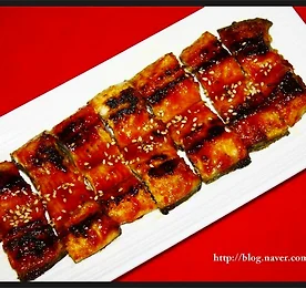 고소하고 맛있는 민물 장어구이 최고의 스테미너 영양식~ 민물장어로 장어구이 만들어 봅니다. 더이상 무슨 설명이 필요하겠습니까! 술안주로 최고! 부부 금술에도 효과 짱! + 굴소스 민물 장어구이 재료 + 민물장어, 이금기굴소스, 매실액, 청주, 맛술, 생강즙, 마늘액, 올리고당, 고추장 민물장어는 3등분해서 돌판에 구워 줍니다, 90%이상 앞뒤로 익혔어요. 석쇠가 있으면 석쇠에 구우면 더 맛나겠죠? 그동안 소스 만들어줍니다. 이금기굴소스, 매실액, 청주, 맛술, 생강즙, 마늘액, 올리고당, 고추장 잘섞어 바글바글 끓여주세요. 굴소스로 맛을내면 깊은 맛이 나서 참 좋답니다. :) 구워진 장어에 앞 뒤로 소스발라가며 나머지 더 구웠어요. 양념 바르고 오래 구우면 탈 수 있으니 90% 이상 익힌 후 양념이 벨 ..
