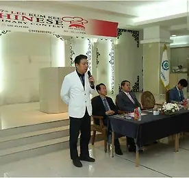 2014년 이금기 요리대회 예선전, 한국호텔관광전문학교 수상작 김희동 - 견과류 크러스트와 중화바베큐소스를 곁들인 아스파라거스 약선 소고기롤 많이 질기다고알려져있는 척아이롤을 약재를 우려낸물에 오랜시간 삶아 부드럽게 만들었습니다. 중화소스와 한약재가 조화롭게 어우러진 요리입니다. 재료 : 월계수, 새송이, 바비큐소스, 정향, 호두, 해선장, 통후추, 전분, 굴소스, 계피, 파, 물, 진피, 아몬드, 감초, 다시마, 콩가루, 대두유, 아스파라거스 양파 사용한 이금기 소스 : 해선장, 굴소스, 바비큐 소스 요리 방법 소요시간 : 90분 1.다시마와 월계수, 정향, 진피, 계피, 감초, 바비큐 10ml, 해선장5ml, 굴소스5ml 를 넣고 충분히 끓여준다. 2.밑간을 한 고기에 아스파라거스를 넣고 말아준다. ..