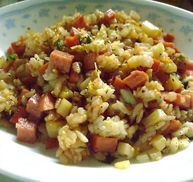 바질이 들어간 굴소스 햄 계란 볶음밥